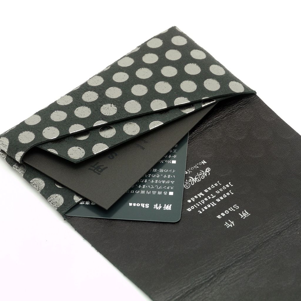 所作Shosa 名片夾/卡夾-波卡圓點款-黑銀點